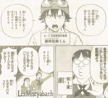 こちらの都合により、3日ぶりの更新となってしまいました。スミマセンm(_ _)m。さて、今週も無事週刊少年ジャンプが発売されましたね。今週号の表紙は、新連載第2弾「無刀ブラック」です。コーヒーの「無糖ブラック」と掛けているのでしょう。・巻頭カラー…無刀ブラック・センターカラー…SOUL CATCHER(S)・黒子のバスケ・斉木楠雄のΨ難・読み切り…魔神のガルド!(最強ジャンプより出張版)・連載終了…新米婦警キルコさん新連載はジャンプNEXTを経て連載。願わくば長続きしてほしいものです。一方、既存の漫画は酷かった。トリコと、特に食戟のソーマ。伸ばそう感全面に出してますね。一応更新はします。グルメ漫画ってネタ尽きそうなイメージ無いけどな…。珍しく辛口コメント書くねと思いましたか?わたし残酷ですわよ。というわけで、今週号も気になった漫画について書いていこうと思います。・SKET DANCE…ボッスンの退学がかかった文化祭のお話。必然的に、新理事長の改革に反対した言い出しっぺがクラスの文化祭実行委員に。テーマは「個性を活かす」文化祭。定番の劇を提案するヤバ沢さん。元生徒会のデージーさんが、全員参加型のゲームを提案。それに合わせ、クイズ大会を提案するエニグマン。全員参加型という前提で、「教室を迷路化」を提案するのは結城さん。お化け屋敷を提案。一日おいて、ボッスンが提案するのは少年たちからヒントを得た「ウォークラリー」。舞台は学校全体。校内に幾つかチェックポイントを設置し、ヒントを頼りに探索するというイベント。・劇・クイズ・ゲーム等の全員参加型イベント・お化け屋敷等の迷路系アトラクション全ての要素を含むことができるイベントを提案。やけくそで纏めるよりかなり合理的ですね。密かにモモカと密会するスイッチ。新理事長の息子を喋らす下りは、やっぱりここの伏線でしたか。こちら葛飾区亀有公園前派出所…今回の話は残念さん(元・北条)がメイン。久しぶりに警察官漫画らしい始まり方。善良な市民からの不審者報告によって捉えた人物は、残念さん。服装は笑えた。警察官の制服でさえ、コスプレに見えるって…。存在感が、中川・麗子と全く正反対の残念。変質者オーラ全開の残念の顔を整形する流れに。整形と言うよりは、全取っ替えの整形。整形の技術ってスゴイですね!整形と言うよりは、特殊メイクじゃね?表面は変えることが出来ても、中身は変えることはなかなか難しいことです。ファッションセンスが酷すぎる笑出身が三重県(関西地方)ということで、大阪通天閣署に紹介される残念。この顔は、お笑いに使えるのか!こんなことが言えるようになった残念さん。変わったなぁ。大阪で人気者に。今後は大阪に転属になるのか?