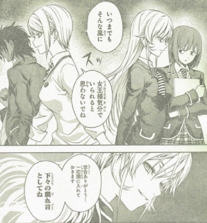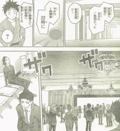 ふれあい合宿もとい、地獄の合宿もはや三日目。午後の試練が終わり、束の間の休みもなく生徒全員大広間に集合。いつもと「眼」が違う堂島さん。怖~い目つきで最終日の内容を発表。テーマは「驚きのある一品」。メイン食材は卵を使い、明日の午前6時に発表。現在22時なので、タイムリミットは残り8時間。あんた鬼やで!開き直ったジビエちゃん。この合宿で一番逞しくなったんじゃないかな?丸井は付いて行くのが精一杯か?もちろんこのお嬢様も最終試験へ。調理室に向かう途中、アンチから挑発のお言葉。この2人の初登場シーンはこちらをクリック。イタリアの双子みたいにハーフっぽい感じが。