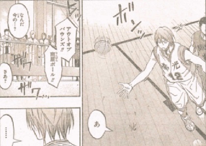 バスケ部コーチに「やめたほうがいい」と宣告された黒子。しかし、夜の体育館で赤司と初の面談。このコマだけ見れば「才能ないね」って見えますね笑まあ確かに、言われてみればそうですね。先輩が後輩を見て「初々しいね~」って思うのも、先輩がある意味その分野で経験値があって言えるわけですから。最初の理解者・青峰に誓います。「もう少し頑張ってみようと思います。」大人になってからも、大切なことです。そして三ヶ月後。黒子は試合形式でのテストを赤司に希望。「まず勝つこと。その上でコーチとキャプテンを納得させるプレーをすること。」何事も、結果でしか見ないんです。テストスタート!開始早々隙を突いたパス!赤司の助言で、隠れた才能が開花する!