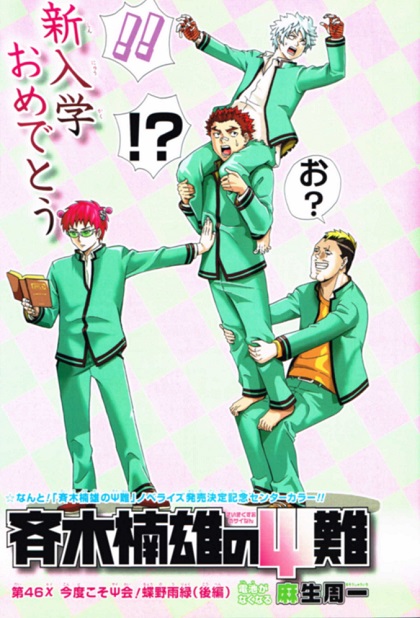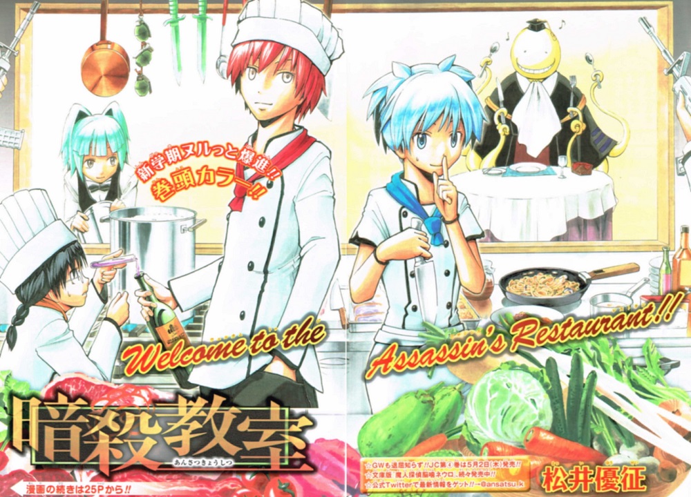 皆さん、学校では新入生、会社では新入社員と疲れたことでしょう。私もその一人です。こんな時こそ、週刊少年ジャンプを見て乗り切って行きましょうよ!今週号の表紙は「暗殺教室」です。・巻頭カラー…暗殺教室・センターカラー…ジェダの通学路・ワールドトリガー・斉木楠雄の災難・読み切り…ジェダの通学路前号から始まっている特別読み切りが続けて連載。前号は「PSYREN」の岩代俊明先生。今週号は「magico」の岩本直輝先生です。個人的に、独特な世界観(特に岩代先生の「みえる人」大好き)を描かれてきたベテラン漫画家です。それでは、今週号も気になった漫画について書いていこうと思います!暗殺教室…烏丸先生のナイフ特訓!体育の授業。2対1でも軽々躱す烏間先生。天はコイツに二物を与えたか。。。イケメンが鬼教官って笑そんな鬼教官でも、怪物相手には人員が不足していいるだろうと、トップはとある人物をE組へ投入。名前は鷹岡明。高級スイーツで生徒に近づく鷹岡。今後の生徒の訓練は鷹岡が行い、烏間は外部からの暗殺者の手引きに専念しろと上からの指示。同僚が言う「極めて危険人物」の意味は…?黒子のバスケ地区内での対外試合開始。スタメンは「一年のみ」。灰崎は仮病で、黒子が緊急参戦。早々ミス。「潰すよ?」と紫原。初試合って緊張しますが、チームメイトとしてひどくね?休憩中に、青峰は見てしまった!「次はない。彼は降格だ。」黒子、ピンチ!ニセコイ…時期は今とはずれ、バレンタインデーのお話。お互い気になってる人を告白。でも、恋が実るまではお互い応援しあって、秘密にする。女の子の美しい友情(・∀・)イイネ!!同じ人物とも知らずに。手作りチョコを、楽に渡す千棘。砂糖と塩を間違えているのにもかかわらず、楽は「おいしい」と一言。モテる奴は違うんですね。こちらも作りなおしたチョコを楽に。一生懸命作れば、美味しくなるもんです。今週号のベストショット!!絵・台詞共に惚れた。「特別な義理」か・・・。使ってみようかな。楽、帰宅。今度は愛すべき子分たちからも手作りチョコの嵐!モテる奴は辛いね!