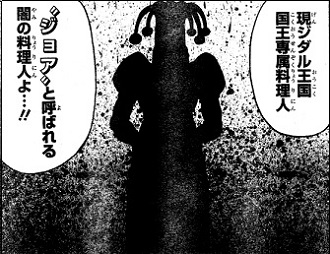 サニーの髪が解かれ、トミーが動いた瞬間が決着の合図!トミーの右腕が動き、勝負!勝負を制したのは、サニー。漫画的にもそうですが…。お互いに「敬意」を表し、生きるか死ぬかの原始的な戦い。勝った者が、相手を食す。スタジアムでの秘密の会合もお忘れなく。光才老達の集会を覗き見していた梅ちゃんが栗坊に捉えられてしまいました。「IGO」「美食會」に続く、第三勢力が明らかに。組織の名前は「NEO」。”ジョア”と言う人物をお忘れの方は、こちらをクリックして下さい。闇料理人だそうで。